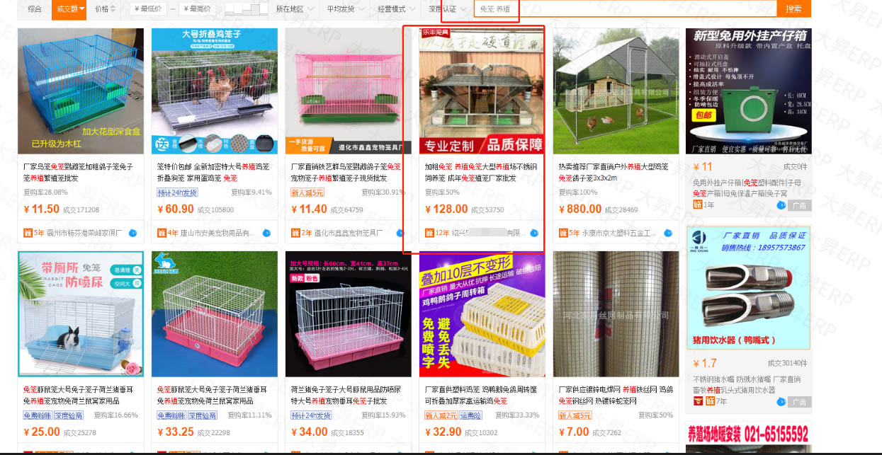 浙江省不锈钢行业蔡总使用大昇ERP ,店铺核心关键词兔笼 养殖,综合排名在阿里首页第一页,成交额在阿里首页排名第四名,效果非常不错的
