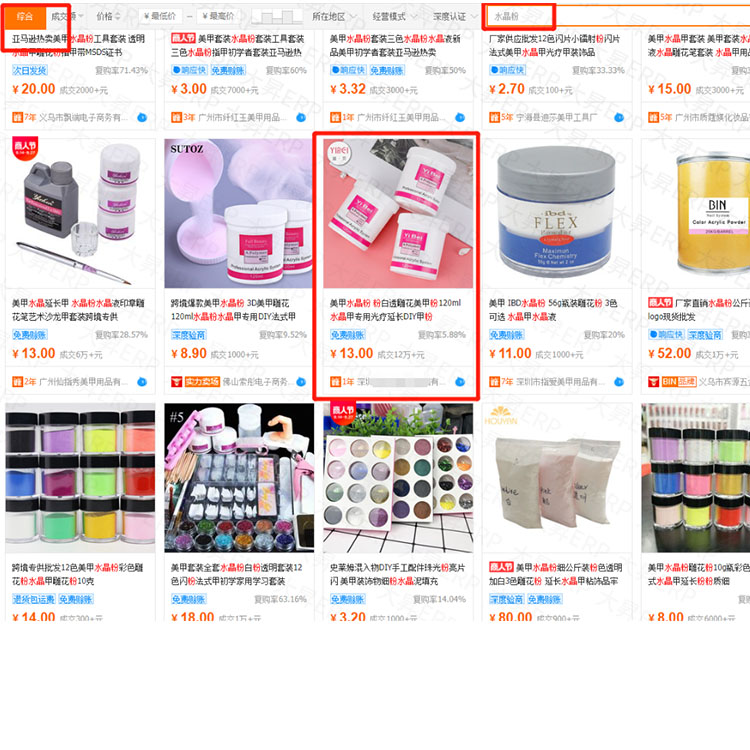 深圳市美容行业蔡总使用大昇ERP ,店铺核心关键词水晶粉 ,综合排名在阿里首页第...